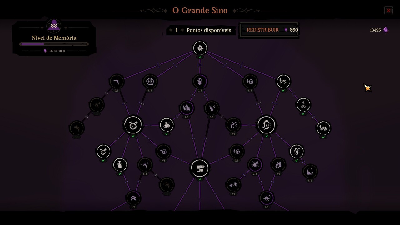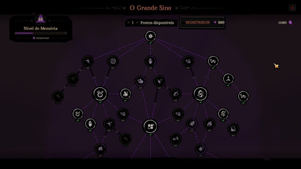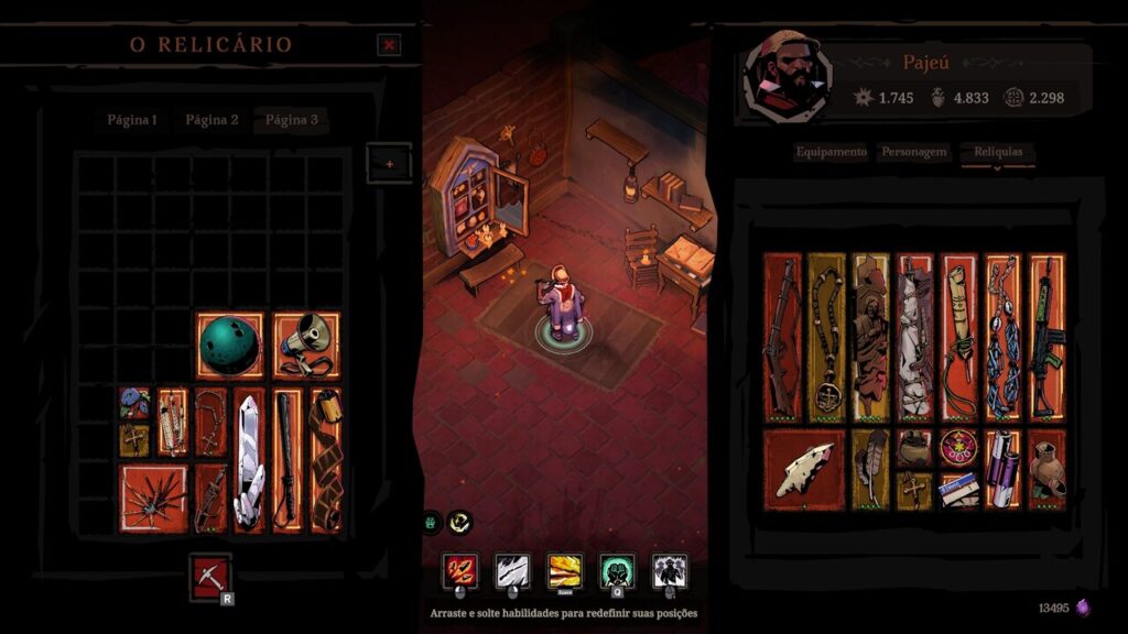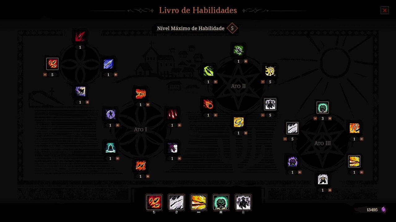 Como qualquer outro hack ‘n’ slash, seu objetivo aqui é fazer uma combinação de itens, habilidades e escolhas da árvore de habilidades que façam o seu personagem dar mais dano e receber menos dano para que permaneça vivo, mas da forma que foi feito por aqui é um pouco esquisito, pois habilidades que considero “primárias”, como o Véu de Plumas, Santo Rosário e Chicote do Feitor, são liberadas no ato 2 ou 3, atrasando algumas builds que poderiam ser interessantes de ter desde inicio.
