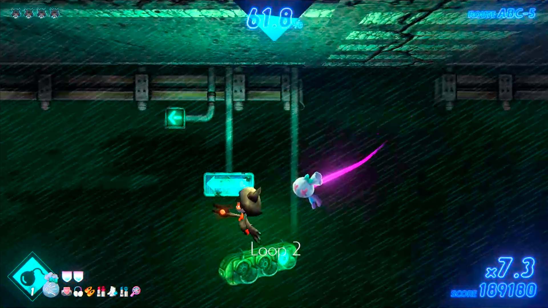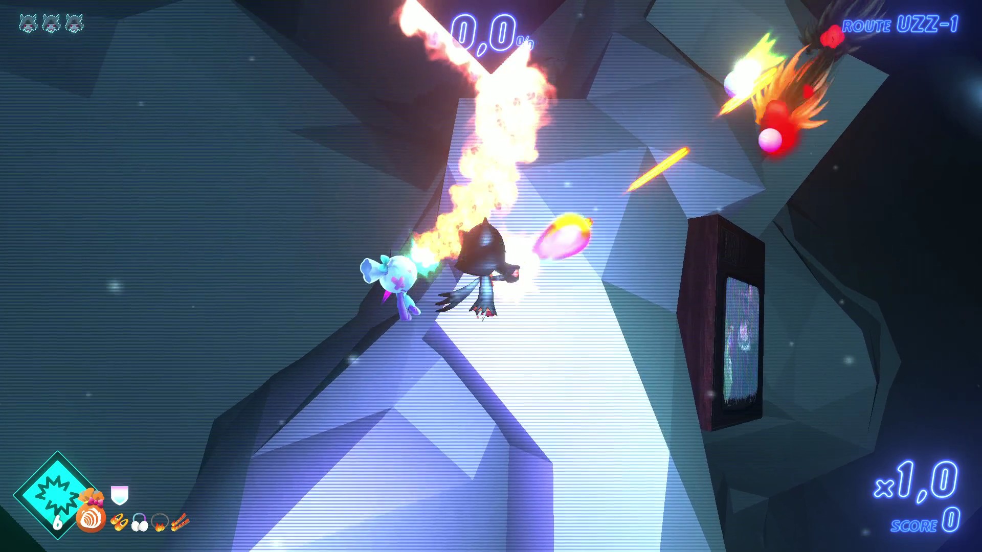 Aqui temos cinco níveis de dificuldades, low, middle, high, super high e ultra high. Inicialmente joguei no low, pois o jogo não deixa muito explicito como que altera as dificuldades, mas basta alterar o código da sua rota (inicialmente como ABC), que perceberá as cores do cenário se alterando e o nome no canto superior a esquerda indicando a dificuldade.